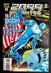 Doom 2099 is presented with a possible past where he was a heroic protector of America. "Opening Night or The Play's the Thing," script by Dan Slott, pencils by Rebecca Guay, inks by Joe Rubinstein; A group with Shakespearean manners and costumes take down a crime boss in a bad part of town. "Old Red-Eyes Is Back," script by Warren Ellis, art by D'Israeli; Metalscream battles and defeats Darkcore, but is hurt badly in the process; Litany Kirpatrick plugs Metalscream into a healing machine, but must hold off the Red Hermitage until he can recover; Once he does, Metalscream uses a powerful blast to finish off the Red Hermitage.