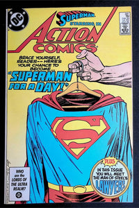 Cary Bates and Kurt Schaffenberger's unique story allows you to observe a day through Superman's eyes in "Superman for a Day!" Plus: Michael J. Wolff, Schaffenberger and Dave Hunt reveal that "Even a Superman Needs a Lawyer!" Cover by Denys Cowan and Dick Giordano.