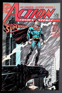 Hal Jordan tracks the beam that destroyed his power battery to another planet, where the being who caused it gets Hal to intervene in an interplanetary war. "My Week In Valhalla" (Chapter 1), script by Roy Thomas and Dann Thomas, pencils by Rick Stasi, inks by Rick Magyar; After Captain Marvel accidently kills a man, Billy Batson tries to make amends with the family. "Seventeen" (Grave Doings Part 5), script by Mike Baron, pencils by Kelley Jones, inks by Tony DeZuniga and Pablo Marcos; Deadman and Madame Waxahachie track the spirits of the Peckshaw twins who have assembled their army of zombies. "Revelations," script by Roger Stern, pencils by Curt Swan, inks by Murphy Anderson; The Consortium details its reasons for desiring to destroy Superman. "Standard Allowable Abductions," script by Martin Pasko, pencils by Frank Springer, inks by Frank McLaughlin; Members of the Secret Six escape from "The Agency" with Steve Traeger. The "Devil Was A Baby," script by Paul Kupperberg, art by Jose Luis Garcia-Lopez; A priest dispatches Satan after he holds The Phantom Stranger at bay.
