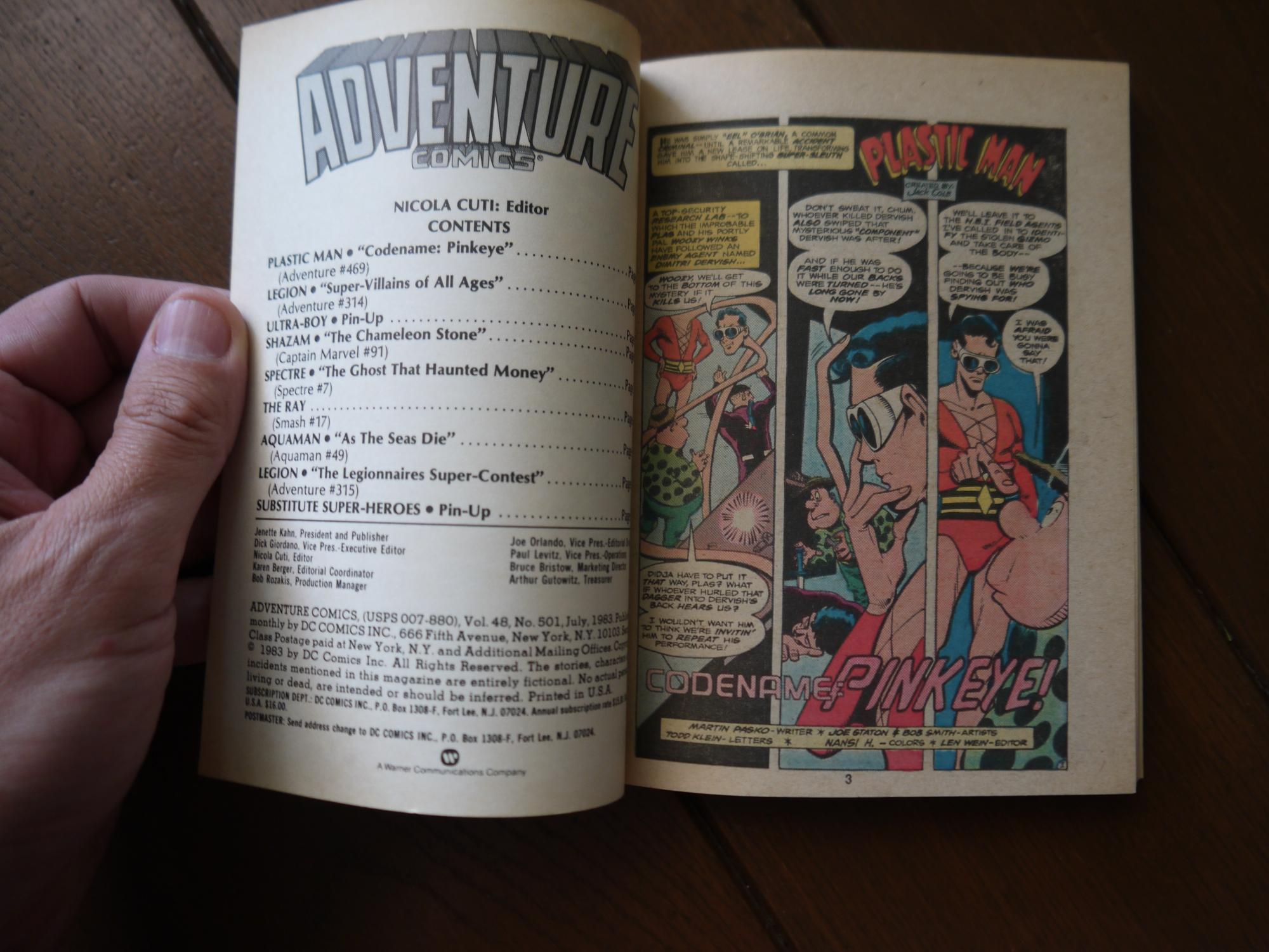 Cover pencils by Ed Hannigan, inks by Paris Cullins. Codename: Pinkeye! starring Plastic Man, script by Martin Pasko, pencils by Joe Staton, inks by Bob Smith