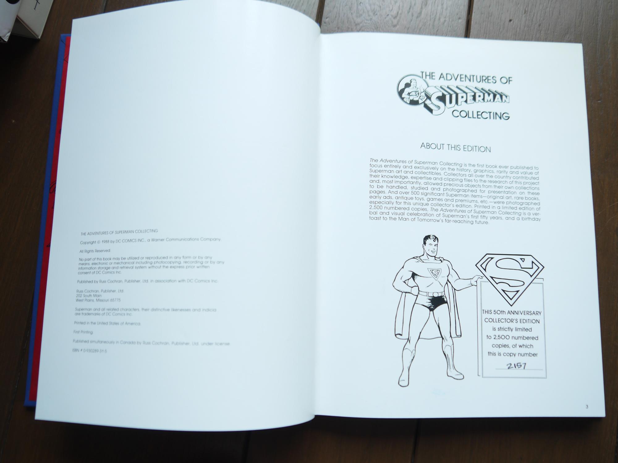 The Adventures of Superman Collecting (1988) Limited Edition (2500 made) published by Russ Cochran, LTD. in association with DC Comics in 1988 was a 50th Anniversary celebration item for the Man of Steel.
