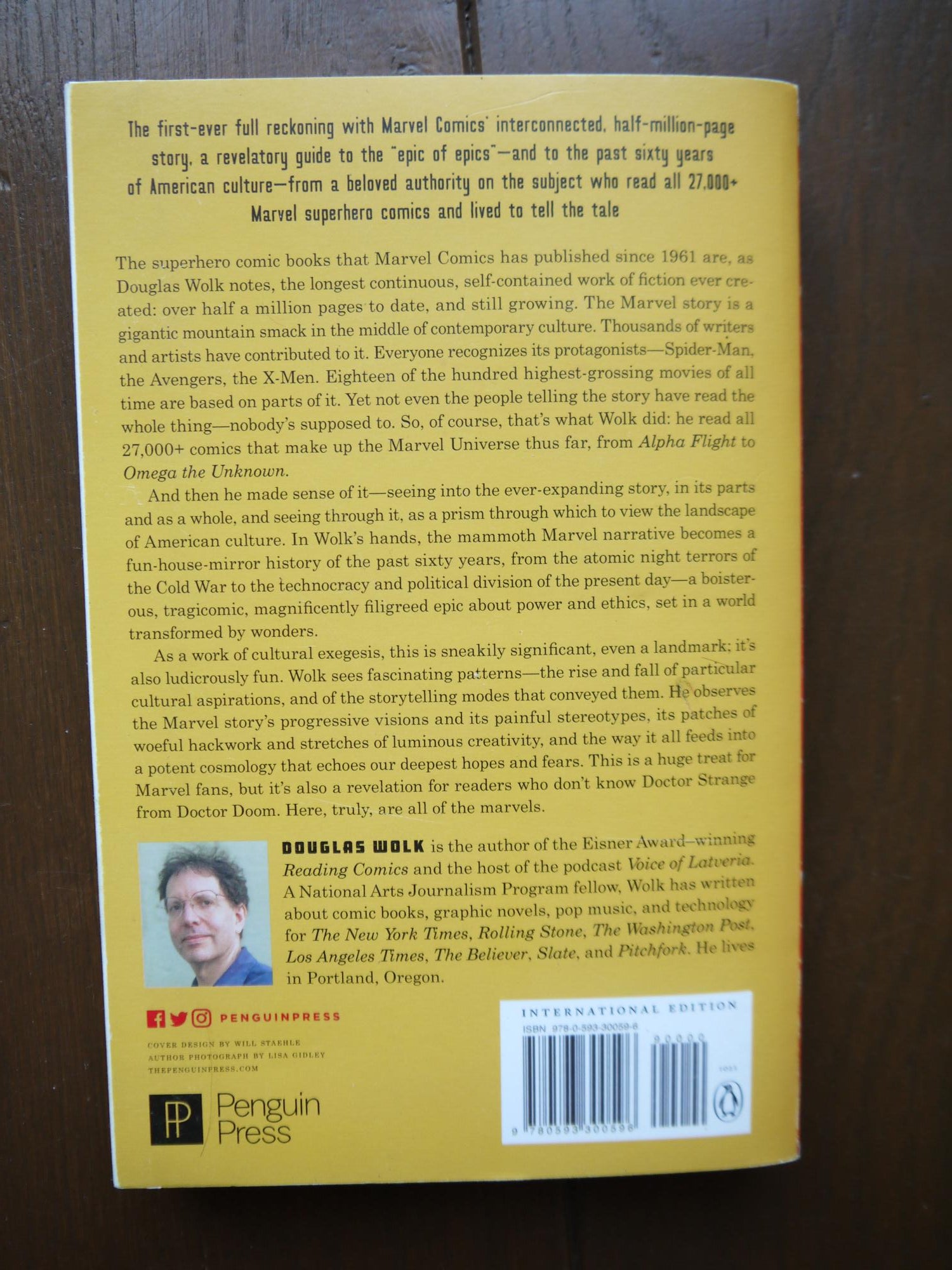The Marvel story is a gigantic mountain, smack in the middle of contemporary culture. Thousands of writers and artists have contributed to it. Every schoolchild recognizes its protagonists: Spider-Man, the Avengers, the X-Men. 18 of the 100 highest-grossing movies of all time are directly based on parts of it. And not even the people telling the story have read the whole thing-nobody's supposed to. So, of course, that's what Wolk did: he read all 27,000 comics that make up the Marvel universe thus far, from Alpha Flight to Omega the Unknown. And then he made sense of it: seeing into the ever-expanding story, in its parts and as a coherent whole, and seeing through it, as a prism through which to view the landscape of American culture. Looking over close to sixty years of Marvel's comics, Wolk sees fascinating patterns and the way they all feed into a potent cosmology that echoes our deepest hopes and fears.