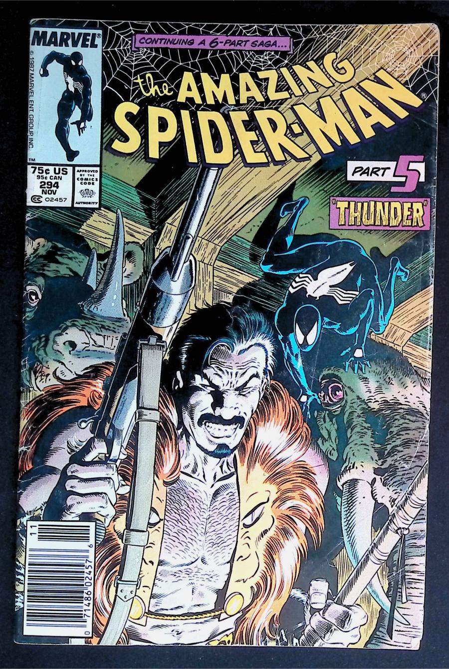 Newsstand Edition. Kraven's Last Hunt: Part 5 of 6 -- "Thunder" Script by J.M. DeMatteis. Pencils by Mike Zeck. Inks by Bob McLeod. Cover by Mike Zeck and Bob McLeod.