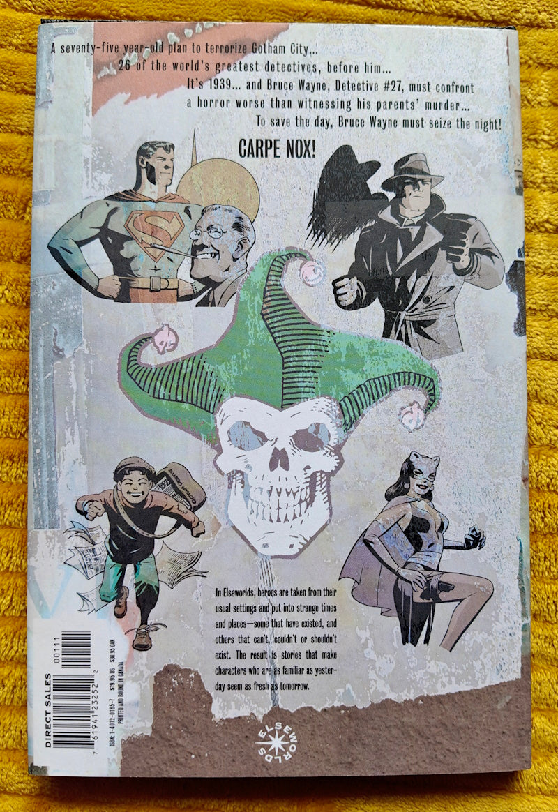 Bruce Wayne becomes a member of a secret society of detectives to battle the decades old criminal conspiracy that left him an orphan in this stunning original hardcover graphic novel! Babe Ruth, Teddy Roosevelt, Selina Kyle and others are just a few of the players in a Batman story unlike any before.