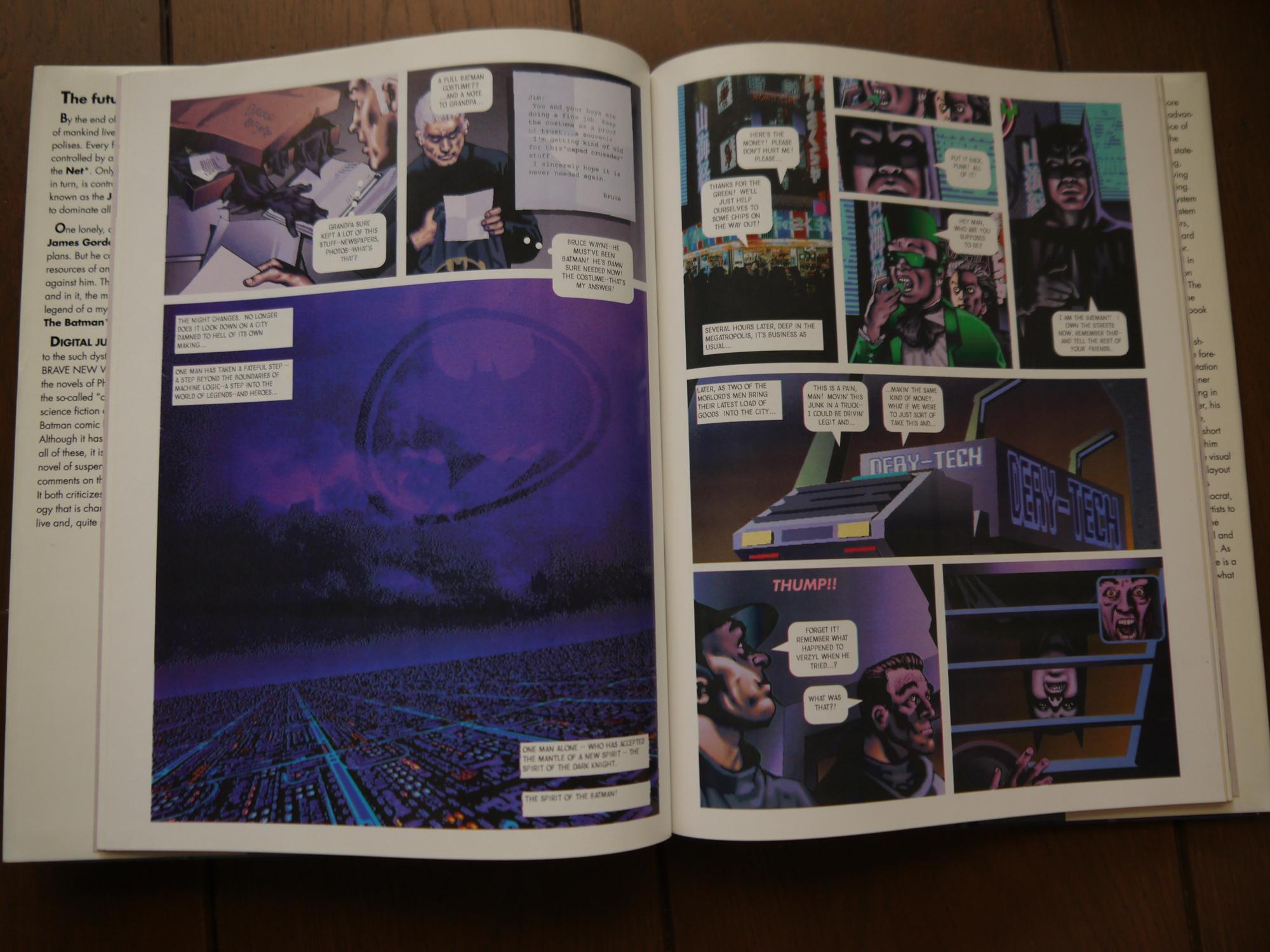 This book is set in a future Gotham City at the end of the 21st century after Batman has died; The country is dominated by high technology, particularly computer networks and their human controllers; James Gordon, Gotham City Police Department detective and grandson of Commissioner James Gordon, takes on the identity of the Batman to free the city from a sentient computer virus crafted by the Joker, who is also now long dead, and to avenge the death of his partner Lena Schwartz; Gordon is helped by a self-aware computer called the Batcomp, programmed by the late Bruce Wayne, and a robot called Alfred (after Wayne's also deceased butler Alfred Pennyworth), both residing in the Batcave under an abandoned Wayne Manor.