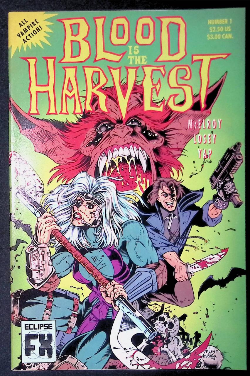 It's the 1990's and at the multi-national conglomerate Lamia International, the executives have taken the term bloodthirsty literally. The entire corporation is secretly run by vampires. After years of half baked attempts to rule the living, vampires have realized that the true path to world domination is through the corporate boardroom. They control employment, the money flow, politicians, and pharmaceutical companies. But their secret has leaked out. Enter two wisecracking assassins named Nikita and Milo. She's a bodybuilder with an attitude who has a personal score to settle with the vampires. He's an expert marksman with the perfect recipe for barbecue sauce. Together they hunt vampires. Nikita and Milo have come up with new weapons for their vampire fight. She has a silver bladed double side scythe, and he has the one object every vampire fears...a chainmail gauntlet that burns any vampire it touches, a gauntlet that is supposed to have been formed from the Holy Grail itself. Nikita and Milo, vampire assassins, get to the very heart of evil, as action, adventure and horror come together when they learn that Blood is the Harvest.