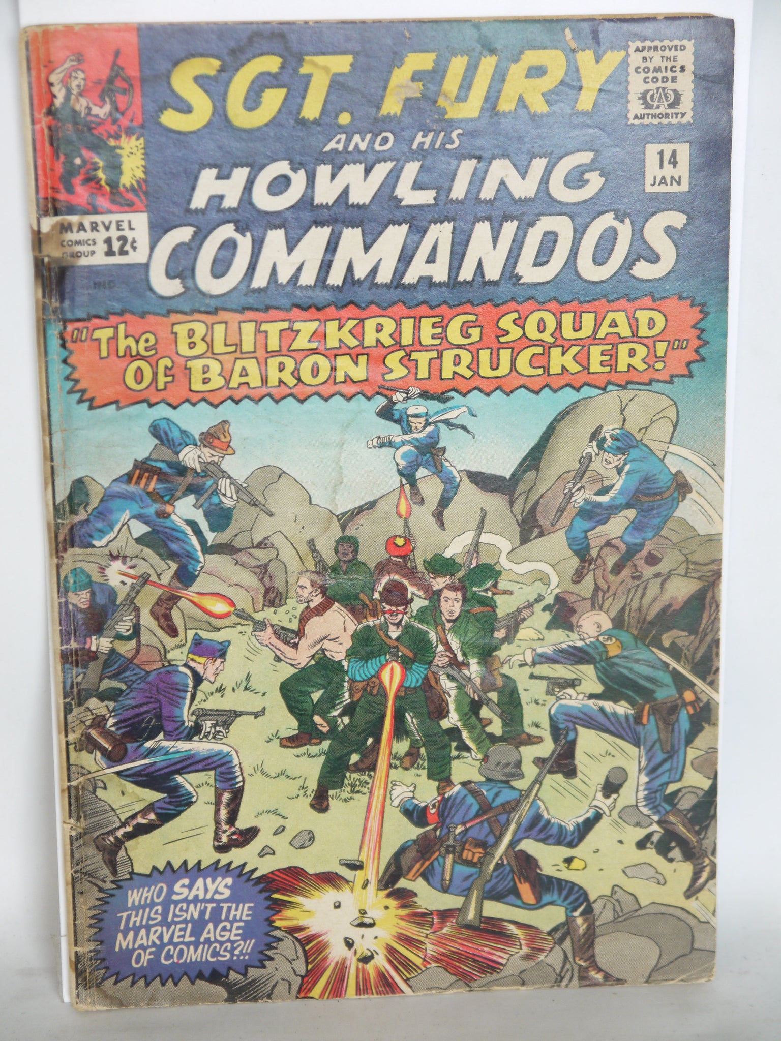 Cover pencils by Jack Kirby, inks by Dick Ayers. "The Blitzkrieg Squad of Baron Strucker!", script by Stan Lee, pencils by Dick Ayers, inks by George Roussos