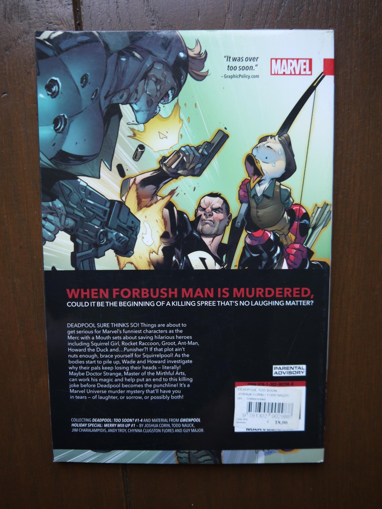 1st printing. Collects Deadpool: Too Soon (2016) #1-4 and material from Gwenpool Holiday Special: Merry Mix Up (2016).