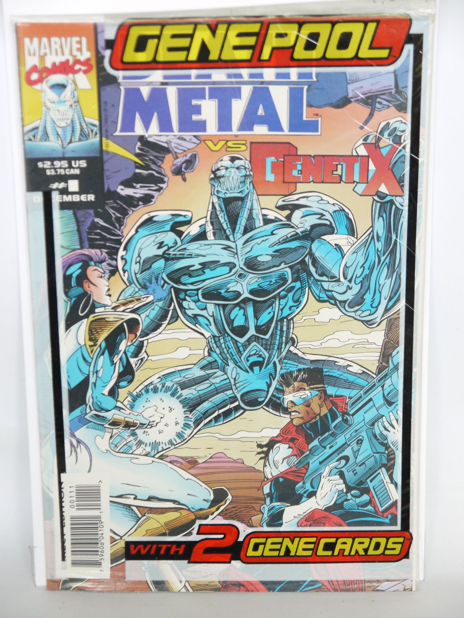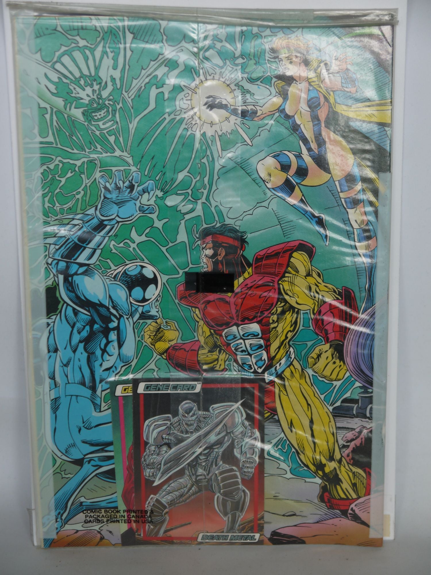 Death Metal sets about committing suicide by creating a Genetic assassin to kill him! He begins obtaining tissue samples from other super-powered individuals to create his own killer, but Genetix has something to say about it.