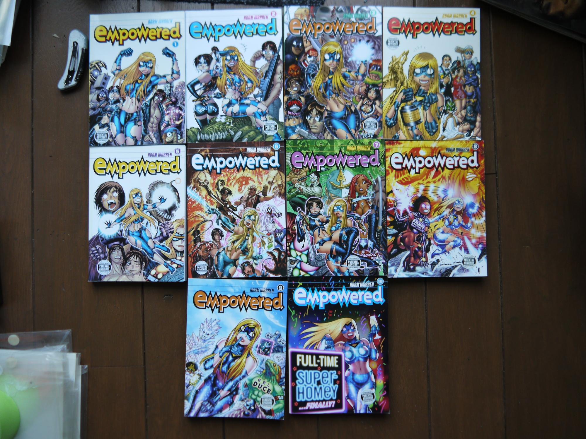 From Adam Warren-writer/artist of The Dirty Pair comics (the original 'Original English-Language Manga' before OEL was cool), and writer of Livewires, Gen13, and Iron Man: Hypervelocity-comes Empowered, a butt-kicking, bootylicious superhero lampoon that raises the bar for long-john lust and low-brow laughs. Remove all previous notions of superhero entertainment from your puny mind...and prepare to be Empowered!