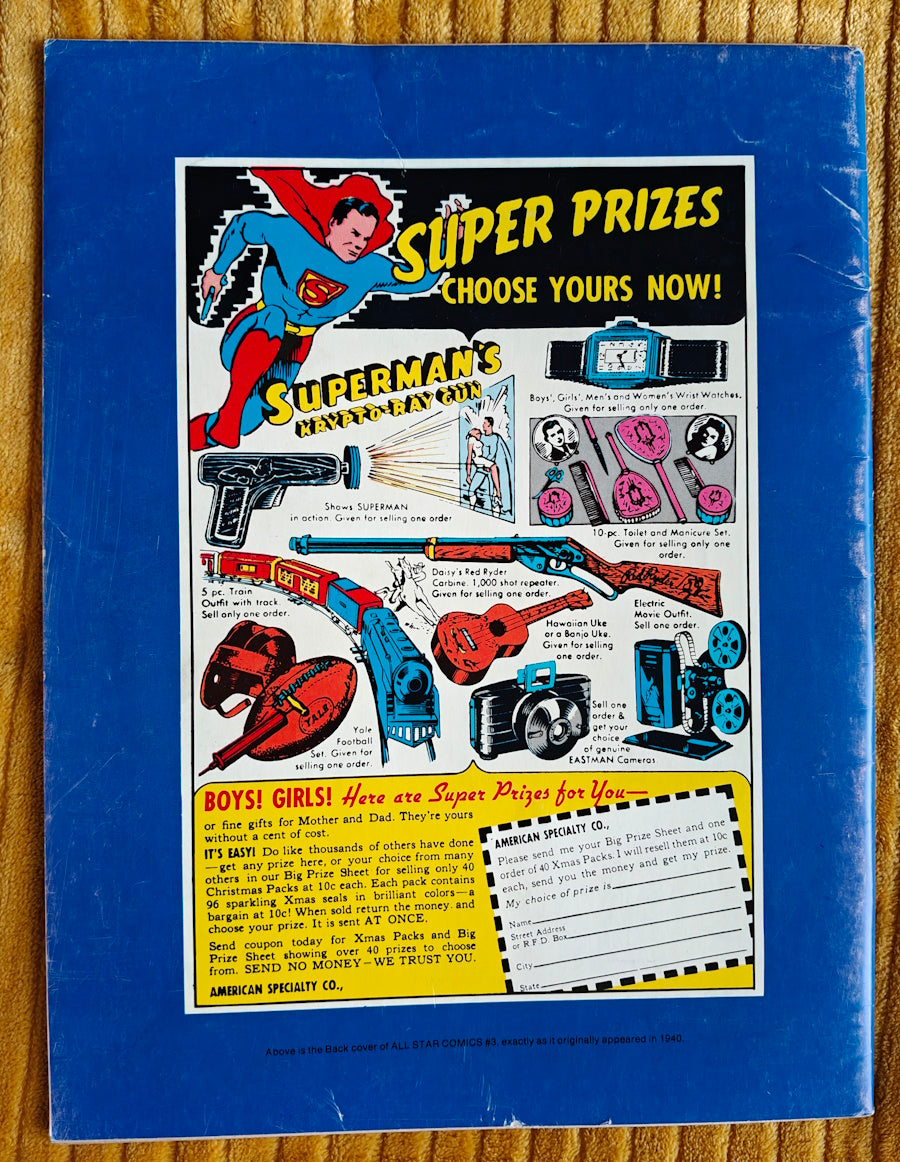 Reprints All-Star Comics #3 (1st Justice Society) including the original ads.