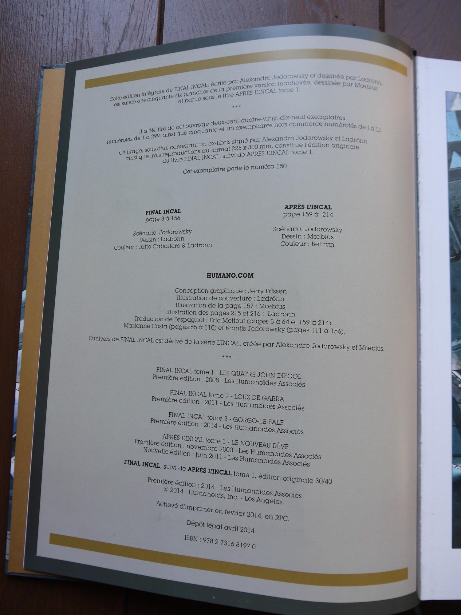 300 exemplaires numérotés et signés par les auteurs, présentés dans un coffret spécial, vendus en vente ferme. Inclus des tirages d'art des trois couvertures. En bonus Après l'Incal T1 de Jodorowsky et Moebius.