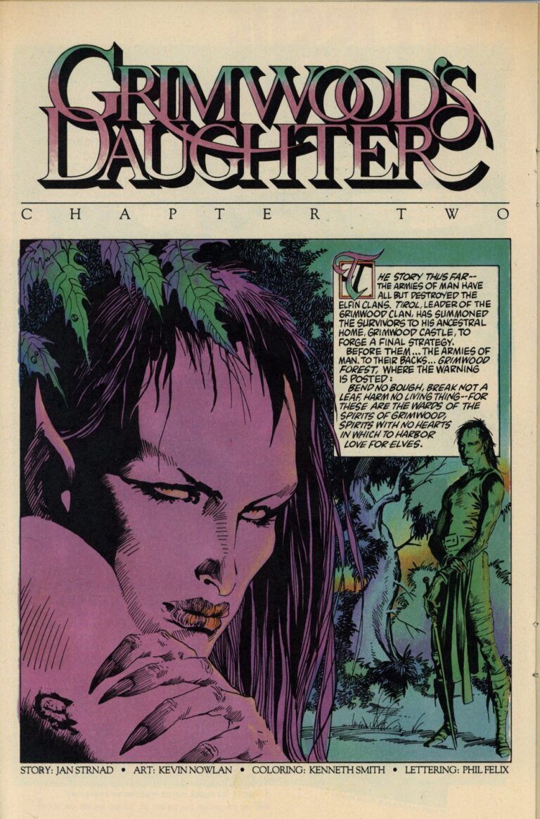 1st printing. Written by Jan Strnad. Art and cover by Kevin Nowlan. Grimwood's Daughter chronicles the last days of the elves in their desperate war against man, magician, and dragon. Artist Kevin Nowlan's powerful images elevate Jan Strnad's dark, cautionary tale into a true gem of fantasy fiction, a graphic fable that is compelling, timeless and unforgettable. This special hardcover edition includes a special section with Nowlan sketches and preliminaries! Hardcover, 64 pages, full color.