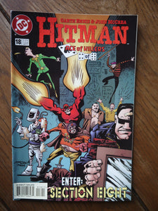 Written by: Garth Ennis Pencils by: John McCrea. Ace of Killers Part 4 Six Pac must reassemble his team, Section 8 (Friendly Fire, Shakes, the Defenestrator, Jean de Baton Baton, Dog Welder, Bueno Excellente, and FlemGem) to help his friends fight off Mawzir. Tommy, Tiegel, and Natt have a moment to collect themselves as they wait for the next attack. Meanwhile, Etrigan continues his pursuit of the Ace of Winchesters from the Lords of the Gun in hell. Cover price $2.25.