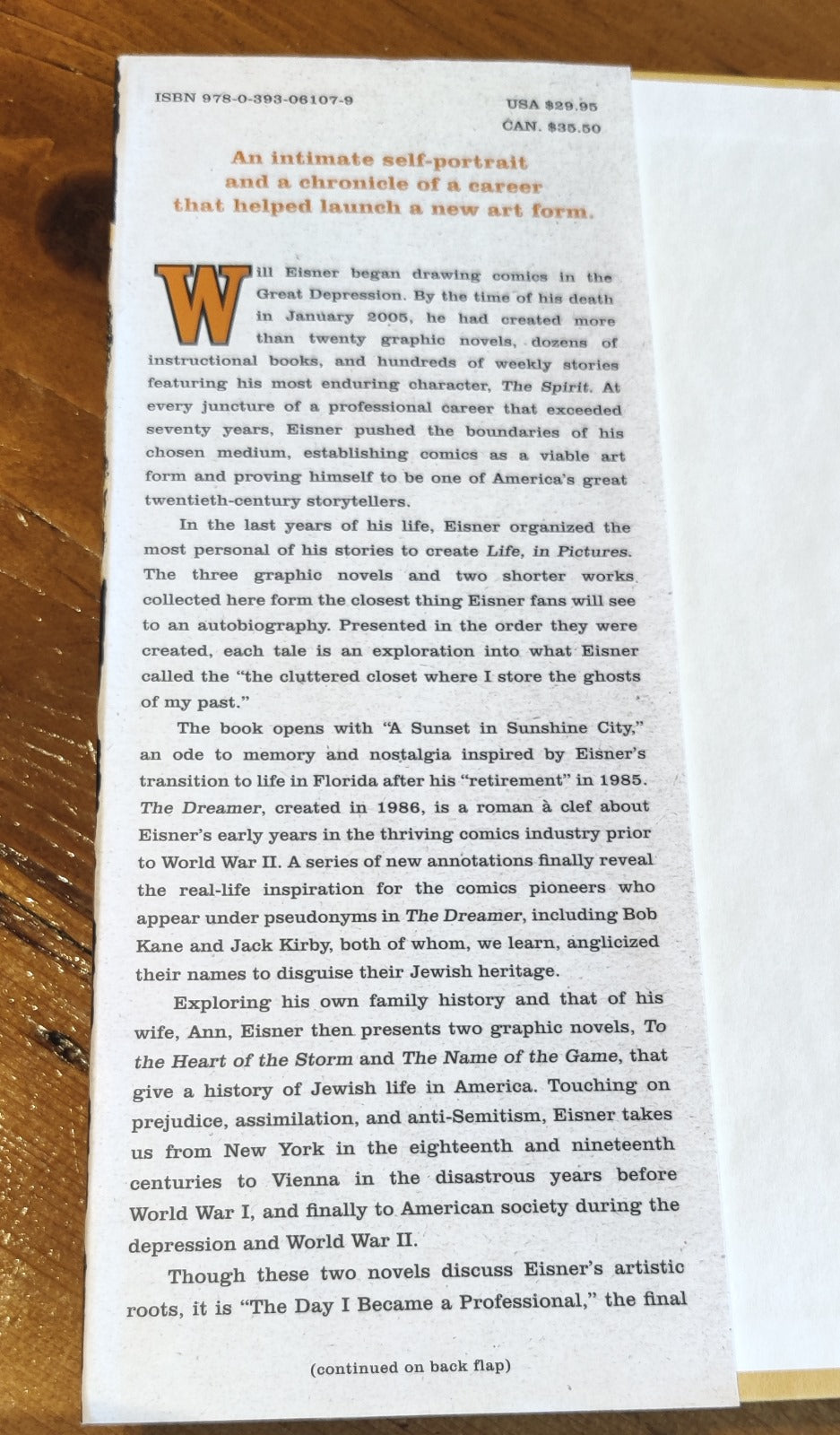 In what will be the closest thing Eisner fans will see to an autobiography, the great master and pioneer of American graphic arts presents the most intimate and personal perspective yet on his life as a writer, a professional, and an artist. "The Dreamer" and "To the Heart of the Storm" describe Eisner's gritty early life and career, while "The Name of the Game" chronicles a personal history of his wife's family. Finally, two shorter pieces illuminate the bookends of a legendary career: "The Day I Became a Professional" describes Eisner's first rejection from a potential publisher, and "A Sunset in Sunshine City" provides a poignant portrait of Eisner in old age.