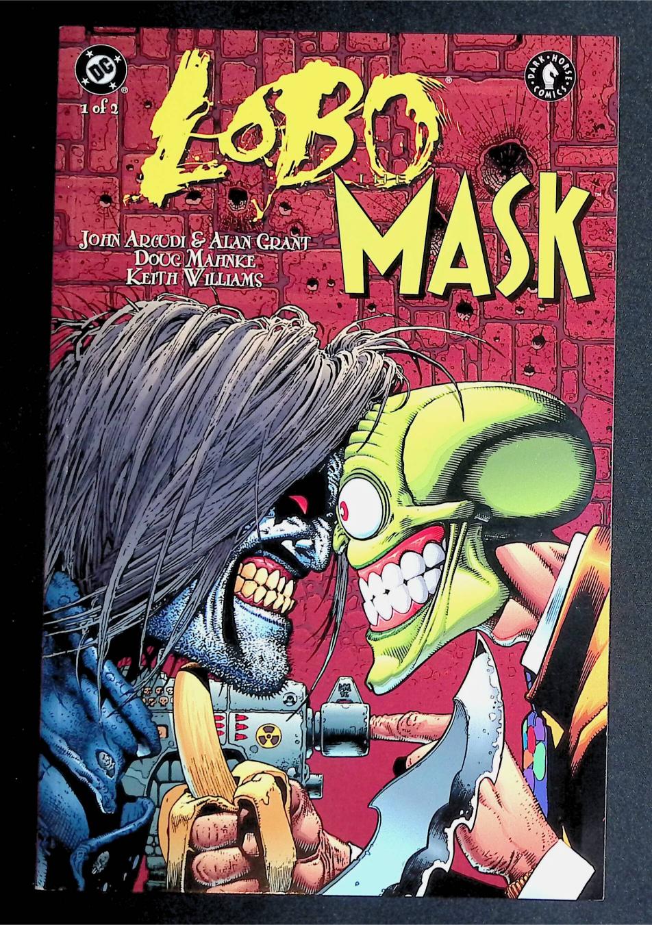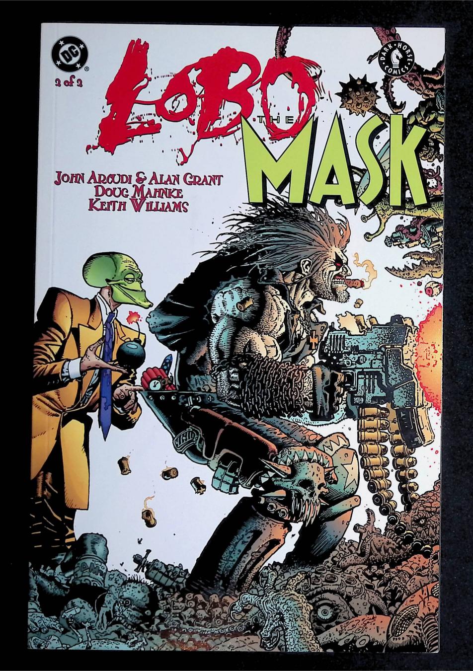 DC Comics and Dark Horse Comics present an absolutely hilarious team-up! Lobo's Alan Grant is joined by The Mask's John Arcudi and Doug Mahnke as they take the wackiest pair in all of comics to new heights of frag-all frivolity and zany adventure. In issue #1, bounty huntin' Lobo tracks down The Ultimate Bastich, a guy who looks like a really, really evil version of The Mask. When the trail leads the Main Man to Earth, the mask has been donned by a small time thug named Ira, resulting in a chaotic fight that completely destroys New York City. And that's just the set-up.