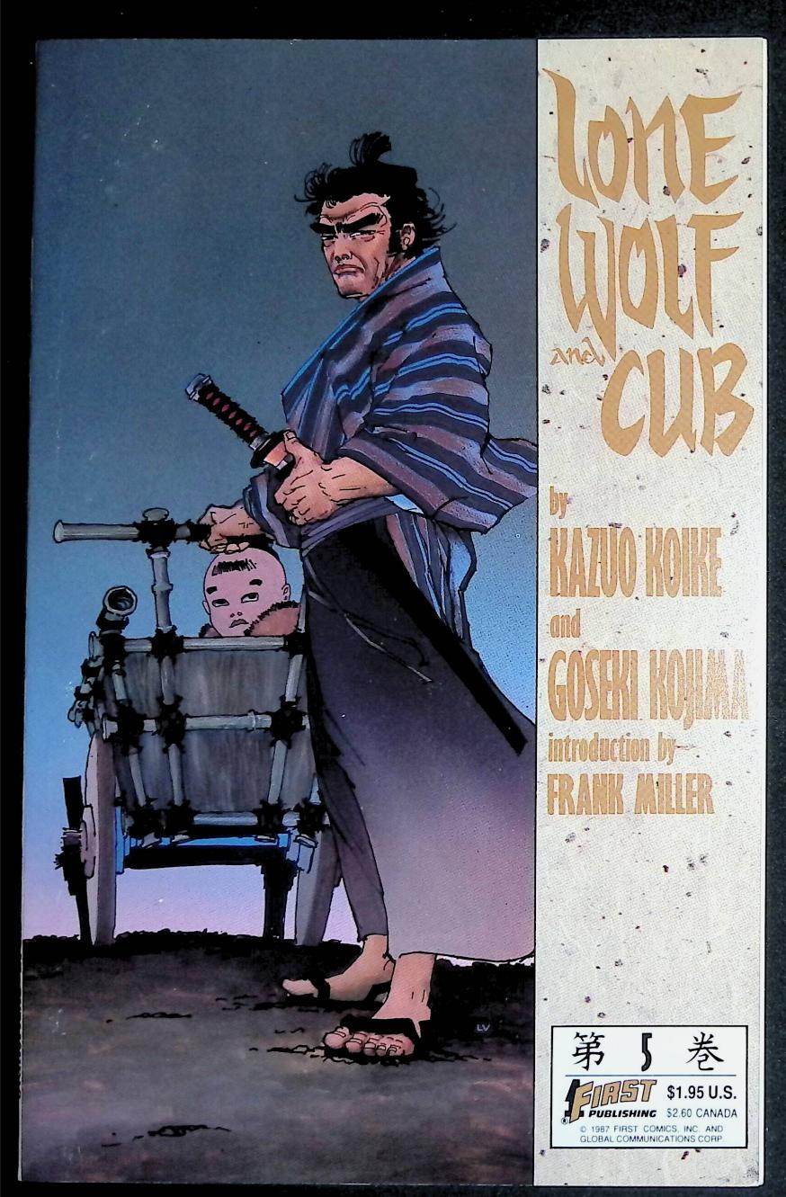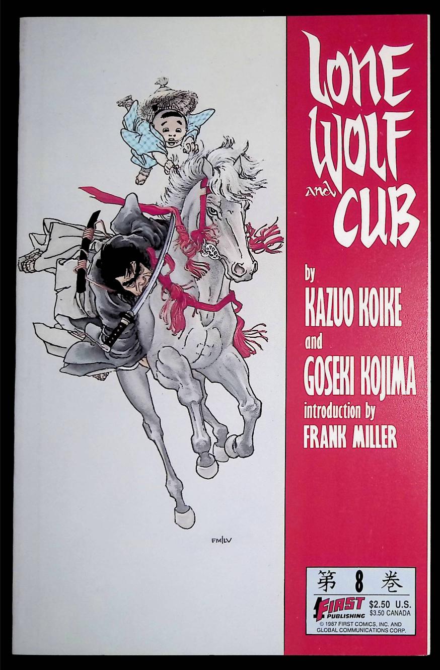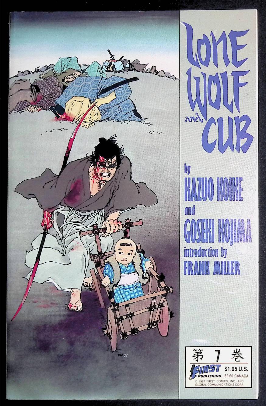 Frank Miller introduction and cover. Wrongfully accused of plotting to overthrow the Shogun, Itto Ogami becomes an outlaw, wandering through the provinces of feudal Japan, seeking vengeance for the murder of his wife and family. Awesome stories by Kazuo Koike and Goseki Kojma, presented in fantastic black and white art. Each issue in this series runs approximately 60 pages. Cover price $1.95.