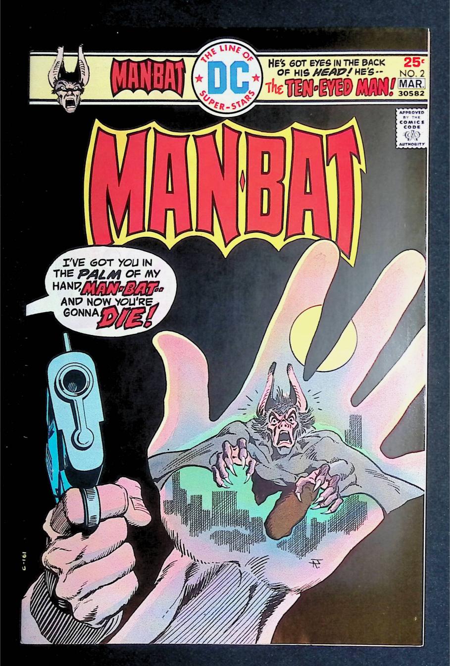 "Fugitive from Blind Justice". He's got eyes in the back of his head! He's...the Ten-Eyed Man! And he has Man-Bat in the palm of his hand!