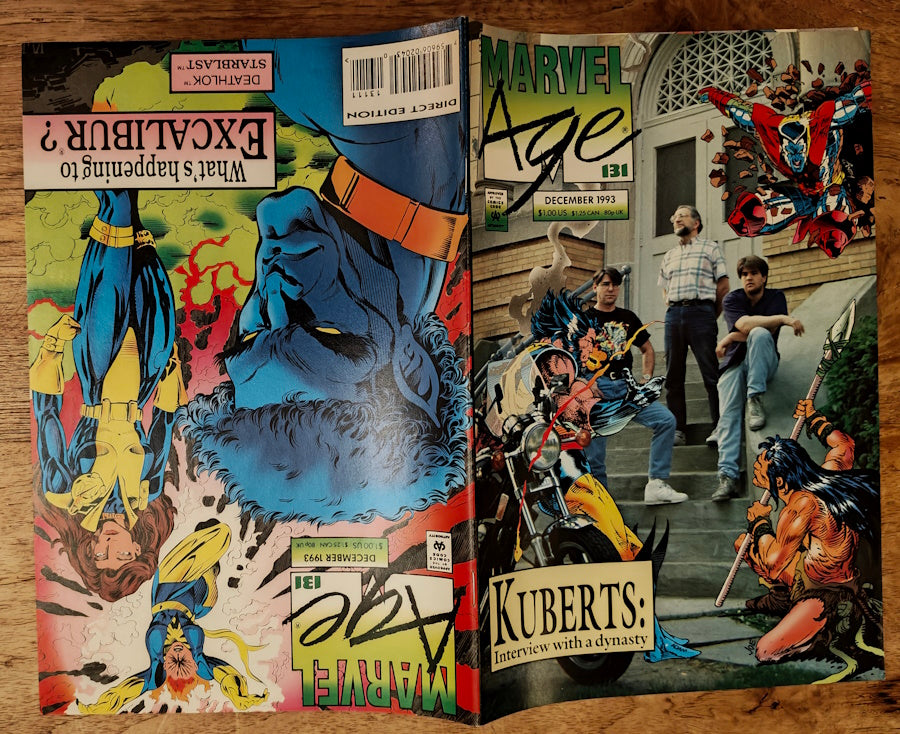 'The Bossmen' strip by Rick Parker; round-table interview with Joe Kubert, Adam Kubert and Andy Kubert; a look at the "Starblast" crossover, with comments from Mark Gruenwald; a look at Excalibur, with comments from Suzanne Gaffney, Ken Lashley and Richard Ashford; 1-page Fred Hembeck strip; Part 2 (of 4) of the 'Origin of the Human Torch' by Alex Ross and Steve Darnall; a look at Deathlok, with comments from Greg Wright and Kevin Kobasic; Groo - Serious Thoughts after 105 Issues (by Mark Evanier, with annotations by Sergio Aragones). Kuberts cover by Joe, Adam and Andy Kubert, with photo by Justin Nisbet. Excalibur flip cover by Ken Lashley & Cam Smith.