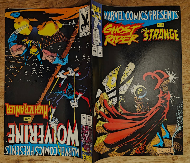 Cover art by Sam Kieth. Male Bonding Part 2: Wherever We Go starring Wolverine and Nightcrawler, script by Scott Lobdell, pencils by Gene Colan, inks by Al Williamson. Against A Rogue God Part 2: A Meeting With The Masters starring Young Gods, script by Gerry Conway, art by Tom Sutton. Doorway to Darkness Part 2: Gathering starring Ghost Rider and Dr. Strange, script by Howard Mackie, pencils by Rick Leonardi, inks by Jimmy Palmiotti. Stunt Show starring Phantom Rider, script by Gary Barnum, pencils by Dave Hoover. 36 pgs.