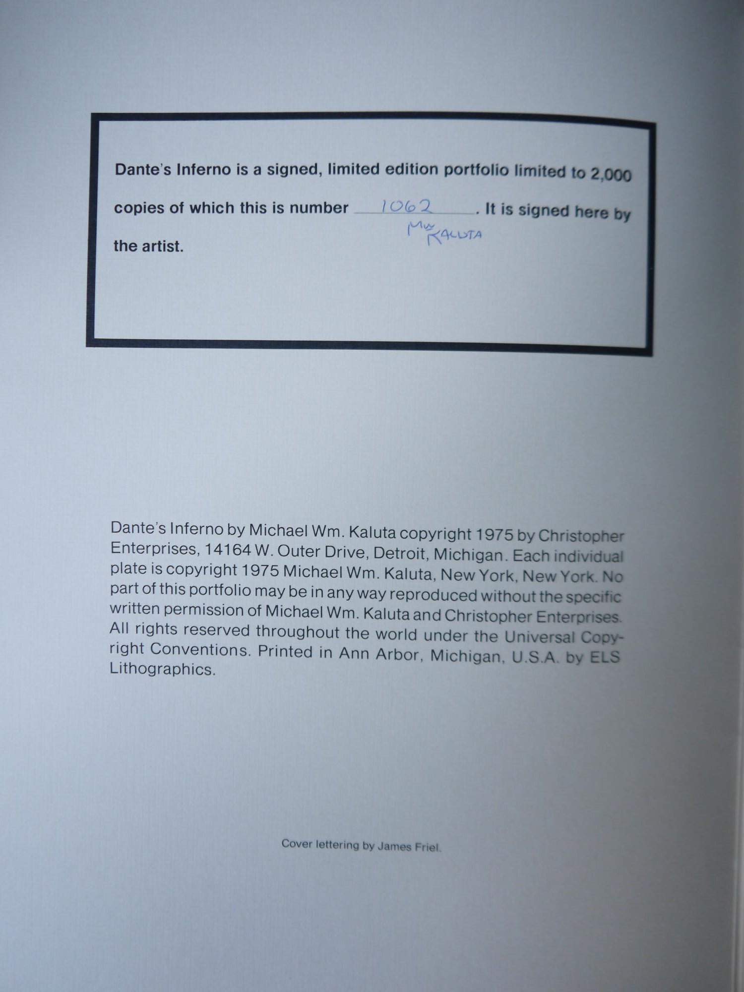 Only 2000 of these porfolios were produced; each copy is numbered and signed by the artist. Plates come in a large illustrated envelope.