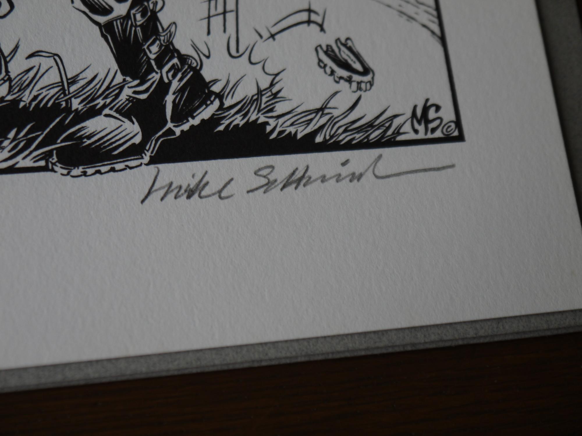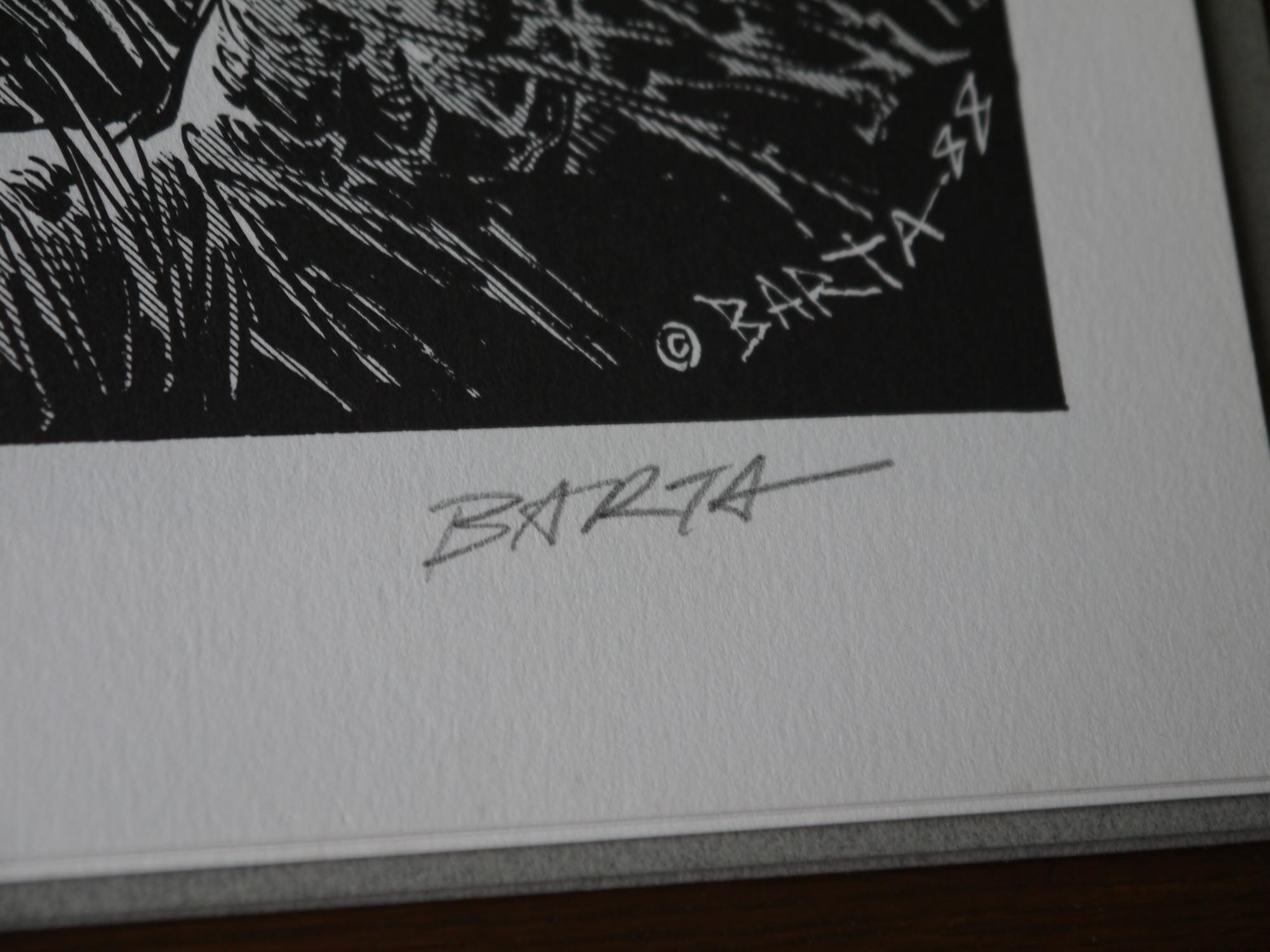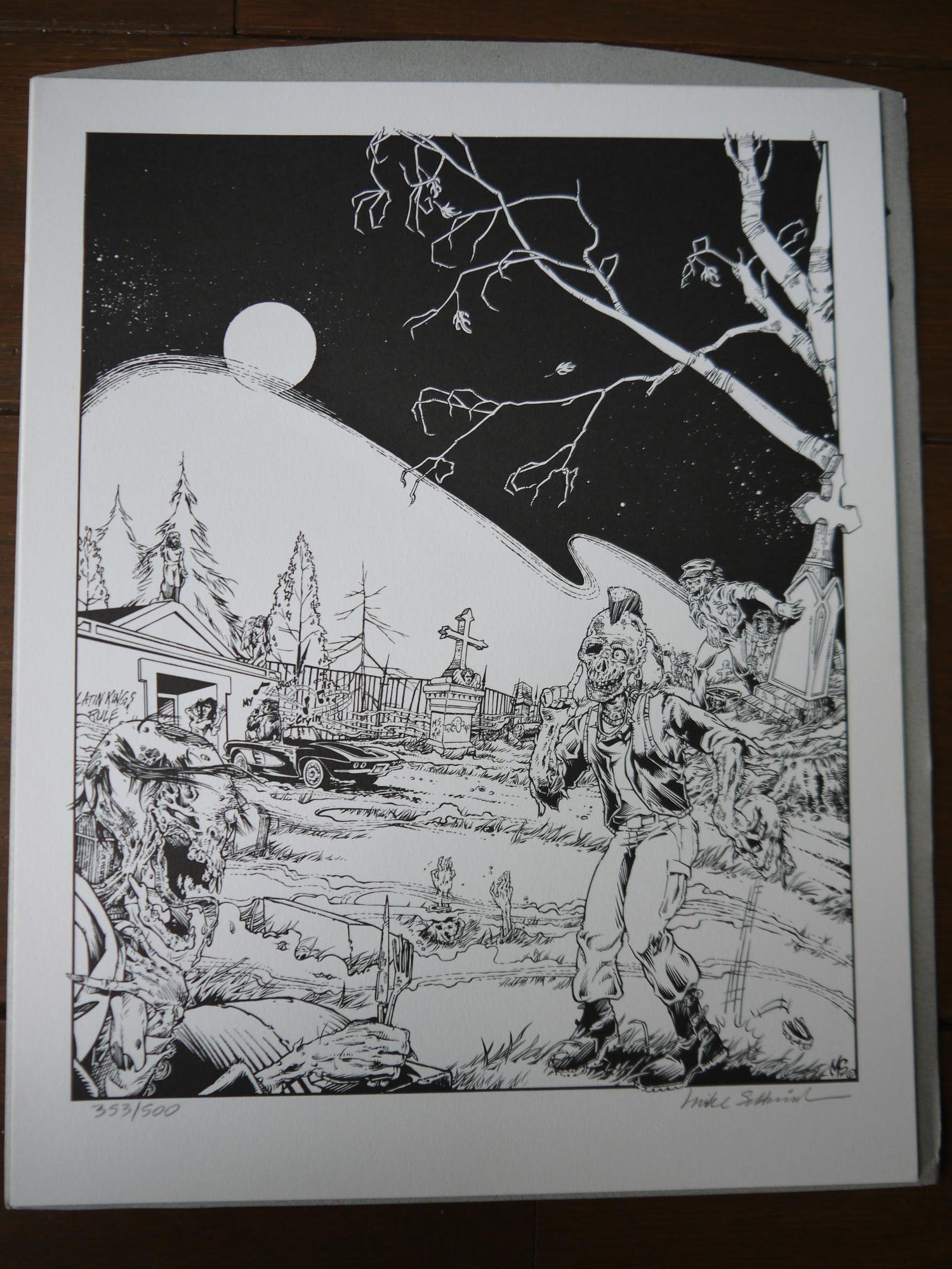 Thirteen black and white plates of monstrous mayhem are presented, in an illustrated, paper folder, by these artists: Mark Nelson, Hilary Barta, Mike Mignola, Moebius, John Nyberg, Charles Vess, Mike Schneider, and Mitch O'Connell.