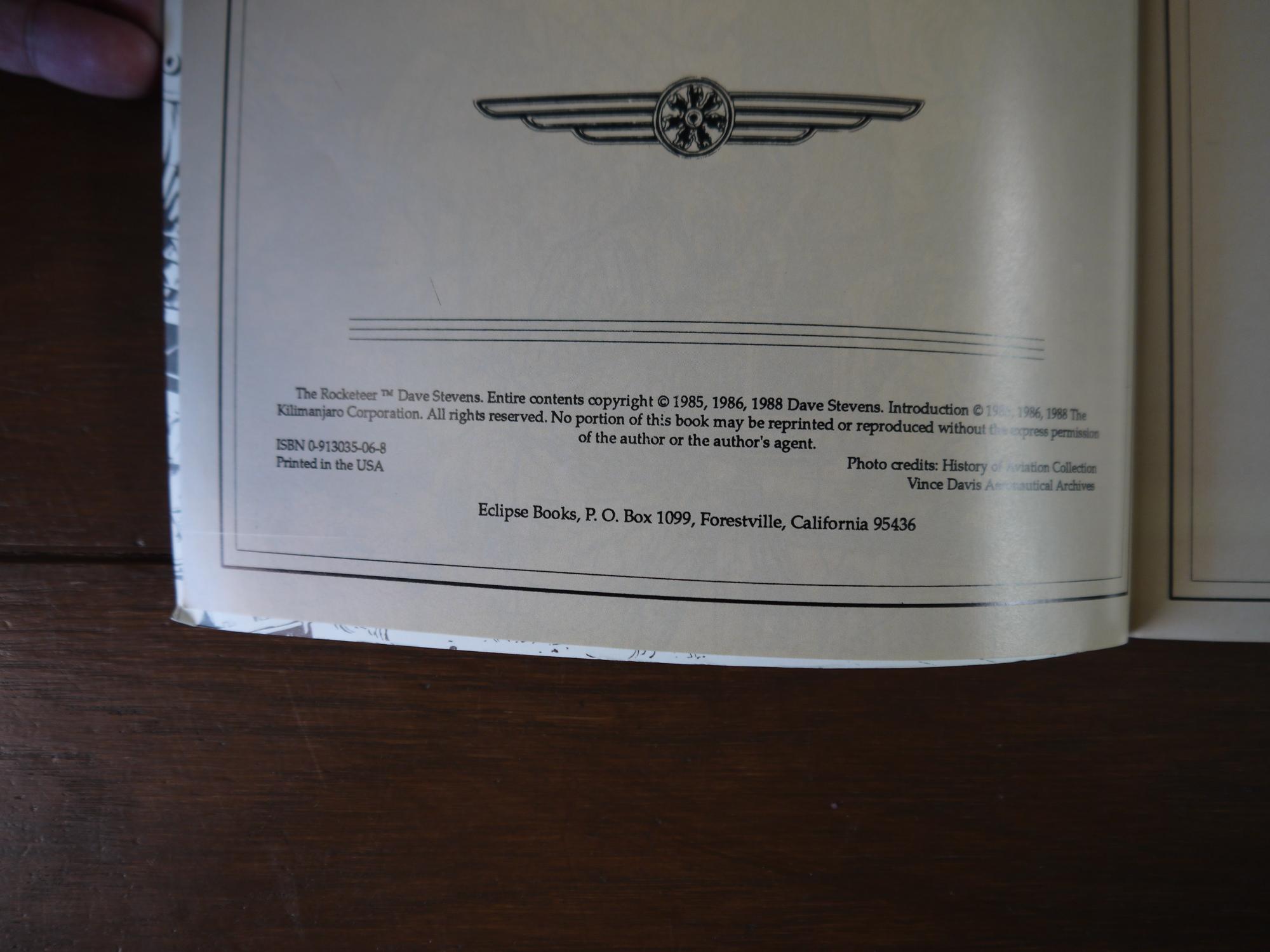 Eclipse Graphic Album Series Volume 7 - 1st printing. Collects Starslayer (1982-1985 Pacific/First) #2-3, Pacific Presents (1982) #1-2, and Rocketeer Special Edition (1984). Story and art by Dave Stevens. Introduction by Harlan Ellison. Includes seven all new pages.