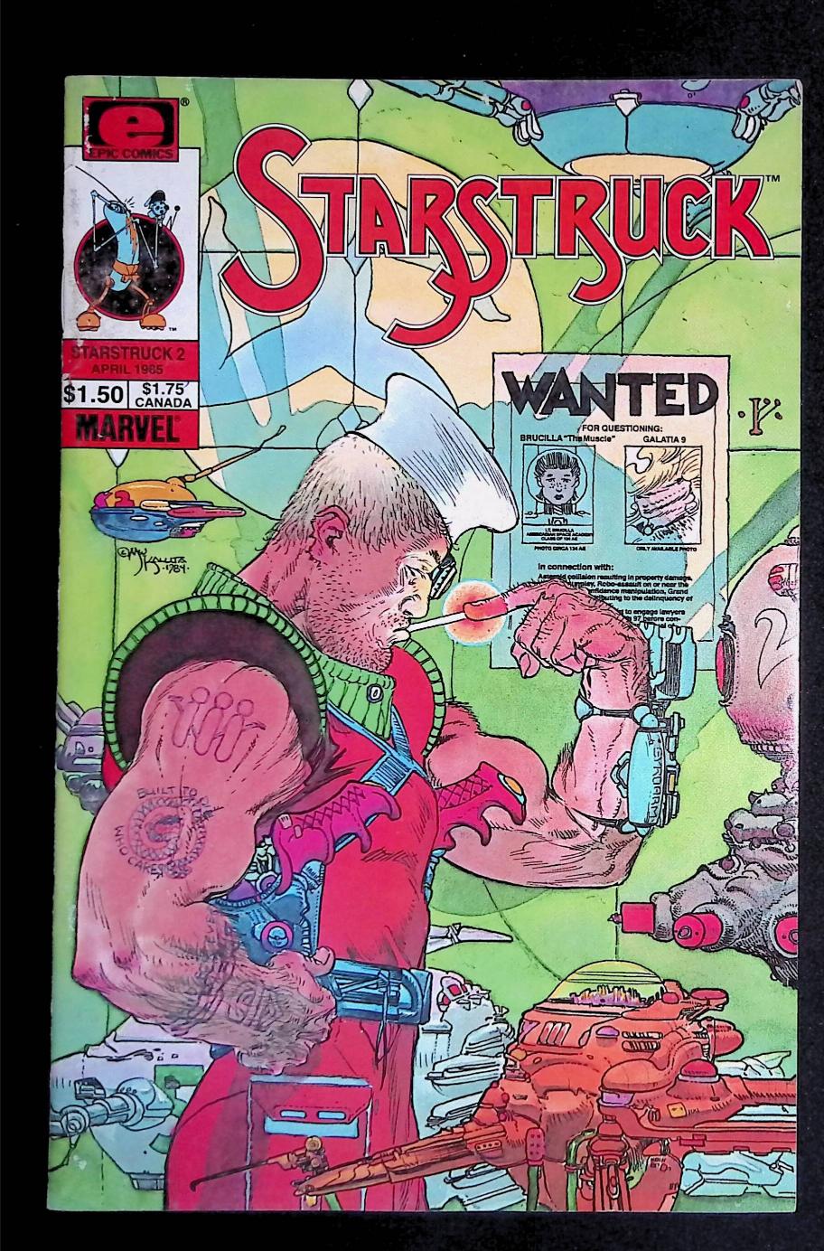 The adventures of Brucilla and Galatia 9 continue!; If you thought they were in trouble in the Graphic Novel, wait till you see what happens to them now!; Brucilla and Galatia 9 are hot on the trail of a headless robot— and everyone is out to stop them!; As if that were not enough, we discover what the connection is between Giorianna of Phoebus and Erotica Ann! The Starstruck Glossary by Elaine Lee. Wanted poster for Brucilla and Galatia 9 by Kaluta.