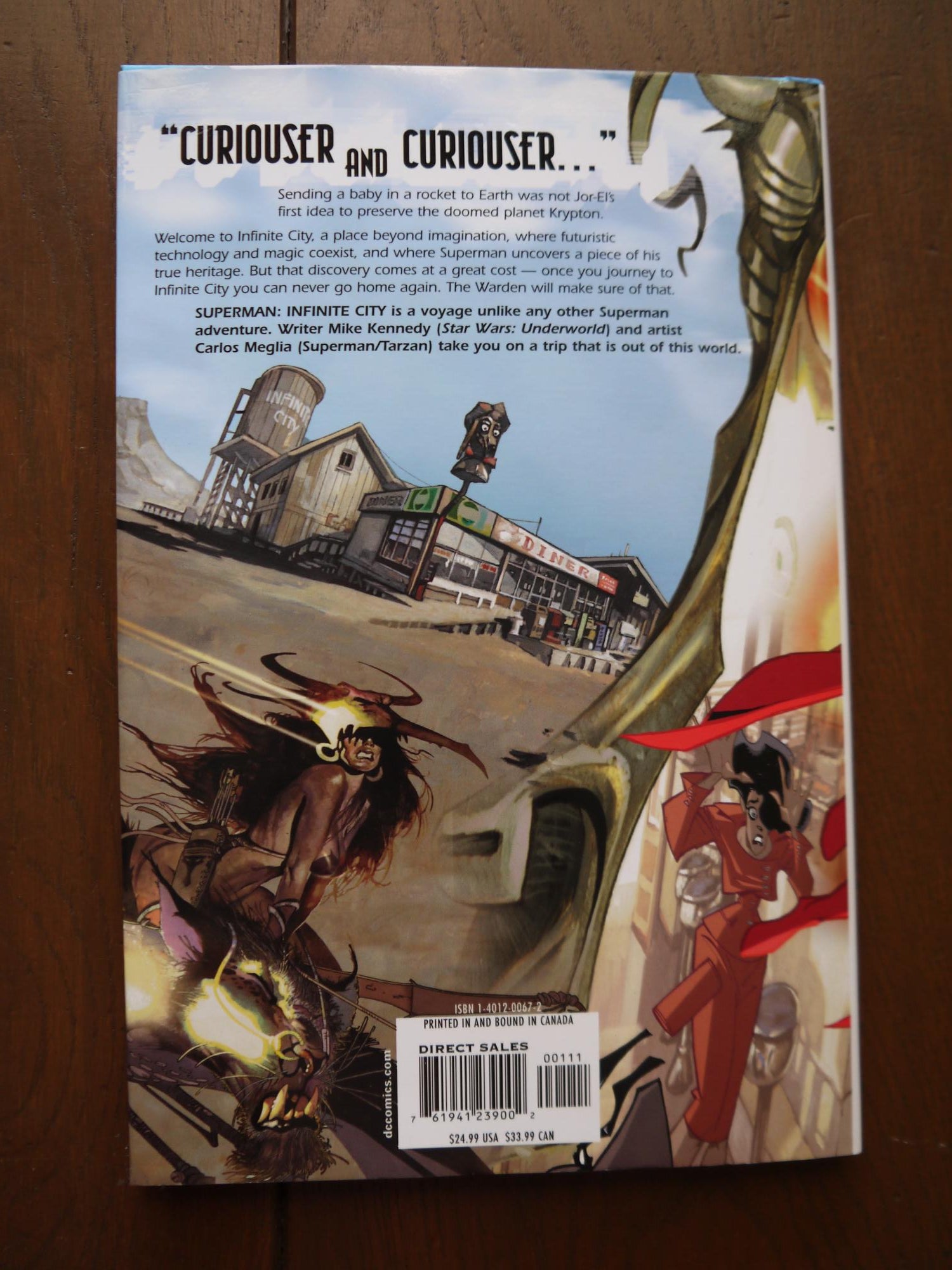 Get ready for a unique new original hardcover written by Mike Kennedy (Star Wars: Underworld) and featuring distinctive visuals by Carlos Meglia (ACTION COMICS, ADVENTURES OF SUPERMAN)! When powerful weapons ravage Metropolis, Clark Kent and Lois Lane travel to an old midwestern town to discover their roots. What they find is the abandoned town of Infinite City! After traveling through a portal, they're transported to a place beyond their imagination, where futuristic technology and magic coexist. But not everyone is happy living there, and they want to come to our world, no matter what the price. Can Superman defeat his doppelganger, the Warden - a being as powerful as he? And what of the architect behind it all: Jor-El?