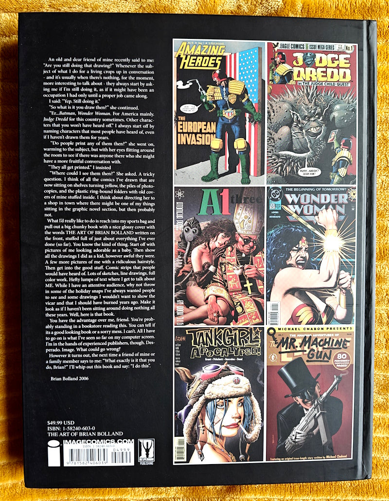 1st printing. Art and cover by BRIAN BOLLAND. Often referred to as the 'artist's artist,' BRIAN BOLLAND has spent the last quarter century producing some of the most memorable and inspiring illustrations the comic industry has ever seen. This handsome volume is a retrospective of this astonishing artist's career and a look at the man himself. Hardcover, 310 pages, PC/PB&W.