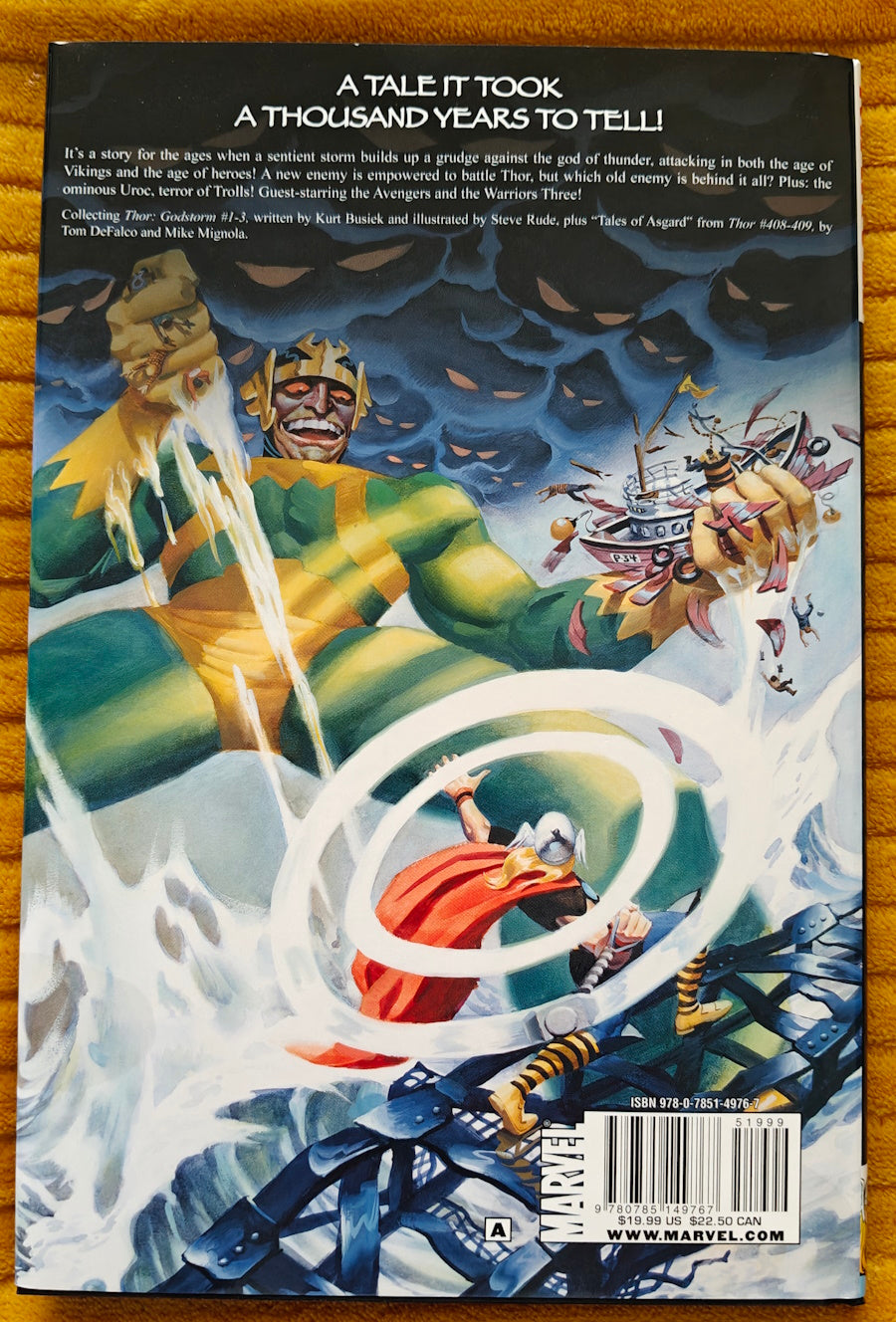 In a tale of two worlds, Thor fights epic battles against trolls, evil scientists and super-villains-and balances his life as a god, a hero and a doctor as Loki manipulates him from afar and Odin banishes him from Earth! What is the Godstorm, and can the God of Thunder hope to defeat it? Plus: in a tale of Asgard past, Thor battles Uroc, the Uru Monster!