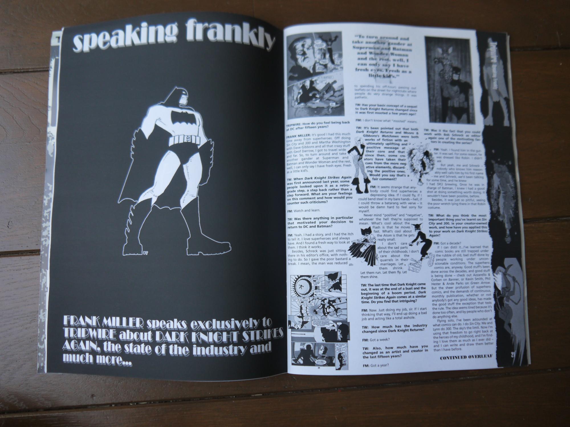 Dec/Jan. Frank Miller on Dark Knight Strikes Again, Interview with Joe Kubert, reviews, news, and more. 8-1/8 in. x 11-5/8 in.; black and white; 46 pages on white paper. Cover price $3.95.