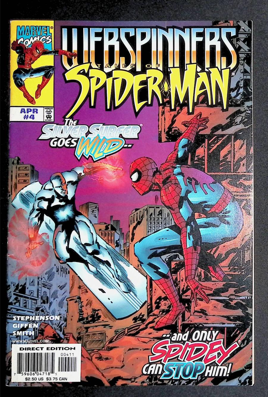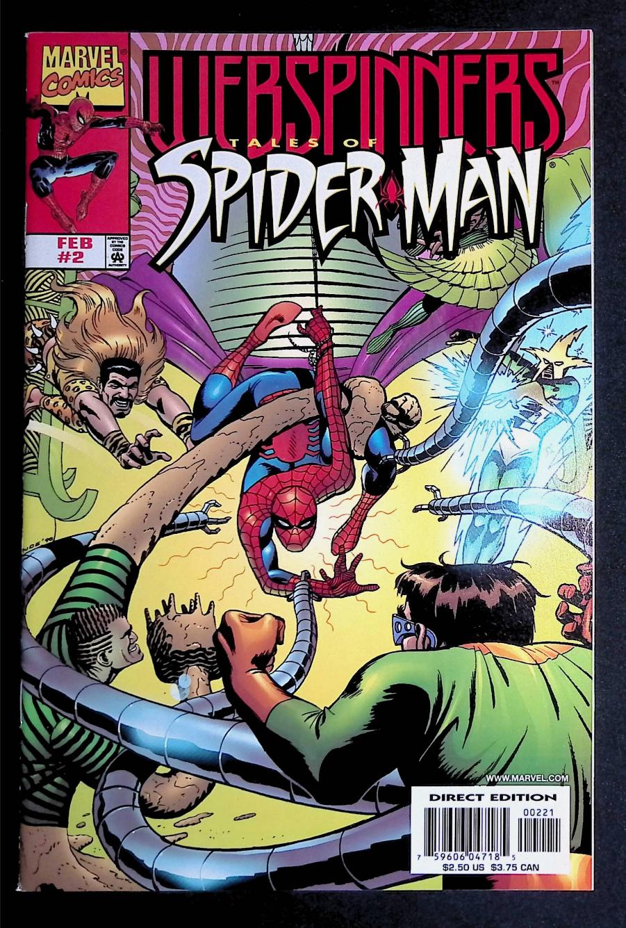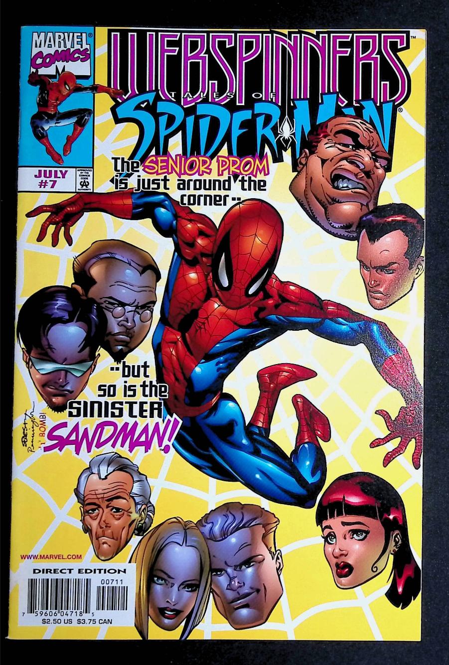 "...As Dreams Are Made On..." Part 1 of 3: Crash and Burn. Double-Sized Issue. Script by J.M. DeMatteis. Art by Michael Zulli. Cover by Michael Zulli. It's a titanic tale from the web-slinger's early days! Mysterio has a plan to destroy Spider-Man by faking the death of J. Jonah Jameson! Will the Master of Illusion's bizarre scheme work against the young wall-crawler? Cameo appearances by Aunt May, Anna Watson, Joe Smith, Flash Thompson, Harry Osborn, and Gwen Stacy. Second story: "The Kiss" Script by J. M. DeMatteis. Art by John Romita Sr. Peter Parker looks back at his last date and last kiss with Gwen Stacy...before her tragic death in Amazing Spider-Man 121. Cameo appearances by Flash Thompson, Harry Osborn, and Mary Jane Watson. (Notes: The first story takes place between Amazing Spider-Man (1st series) issues 38 & 39. This issue features a gatefold cover recapping Mysterio's first appearance in the classic Amazing Spider-Man (1st series) 13. This three-part story was reprinted in 2017 in the trade paperback: Spider-Man Webspinners The Complete Collection.)
