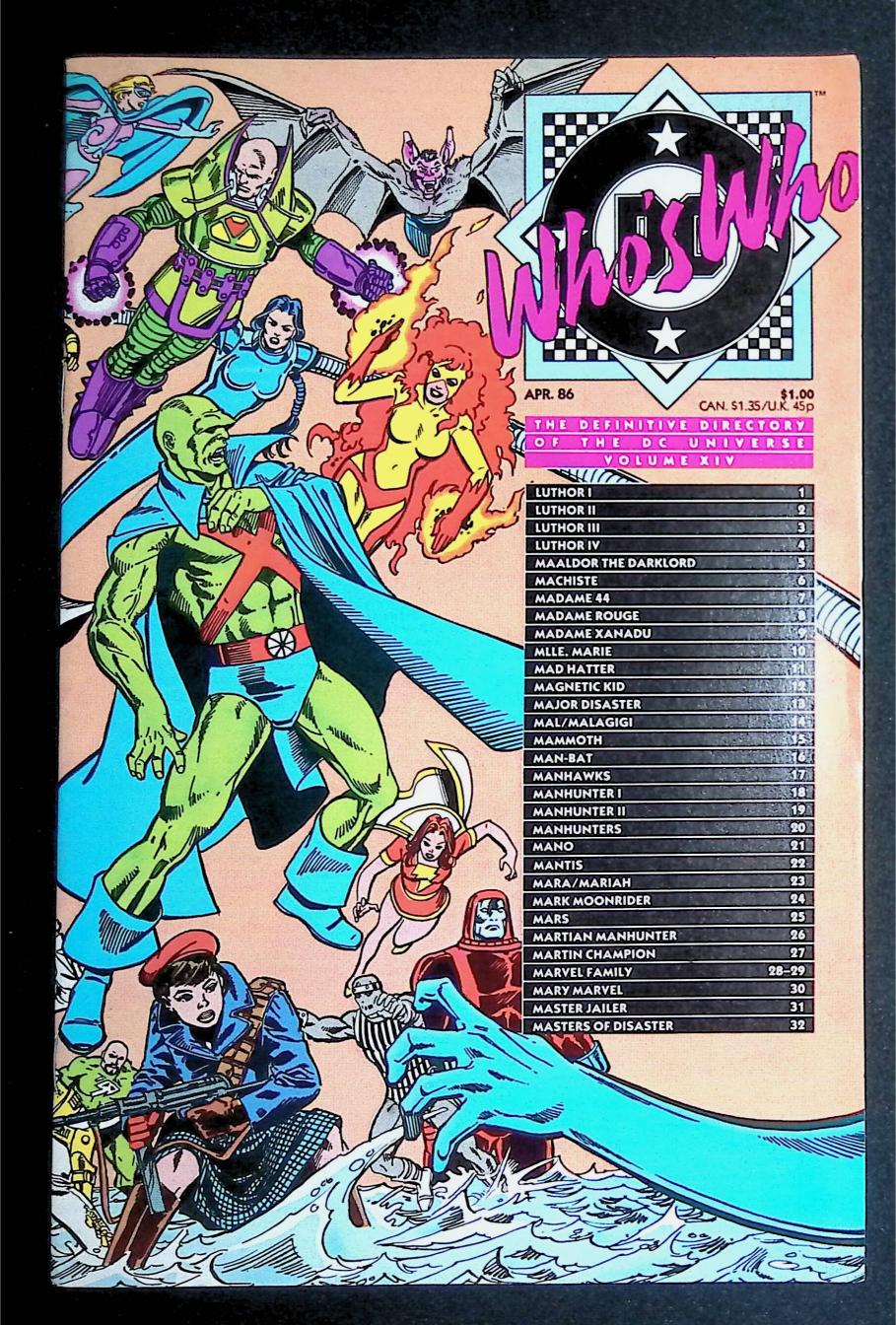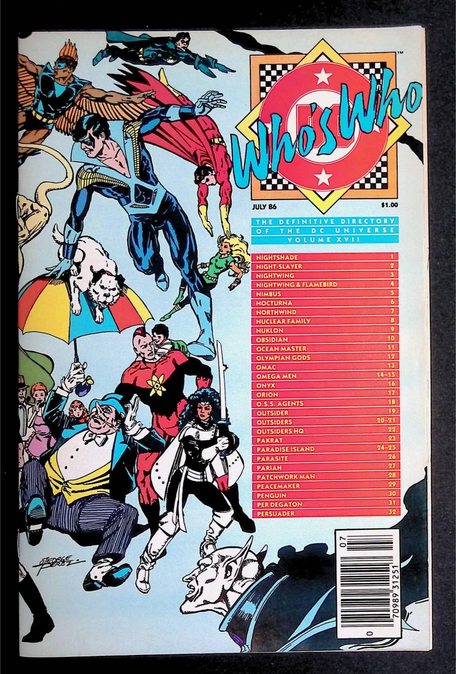 Written primarily by Len Wein and Marv Wolfman (with research by E. Nelson Bridwell and others), Who's Who is a meticulously detailed, alphabetically arranged series of reference volumes that provides personal data, history, and powers and weapons for countless DC characters, both popular and obscure, both new (circa mid 1980s) and old.